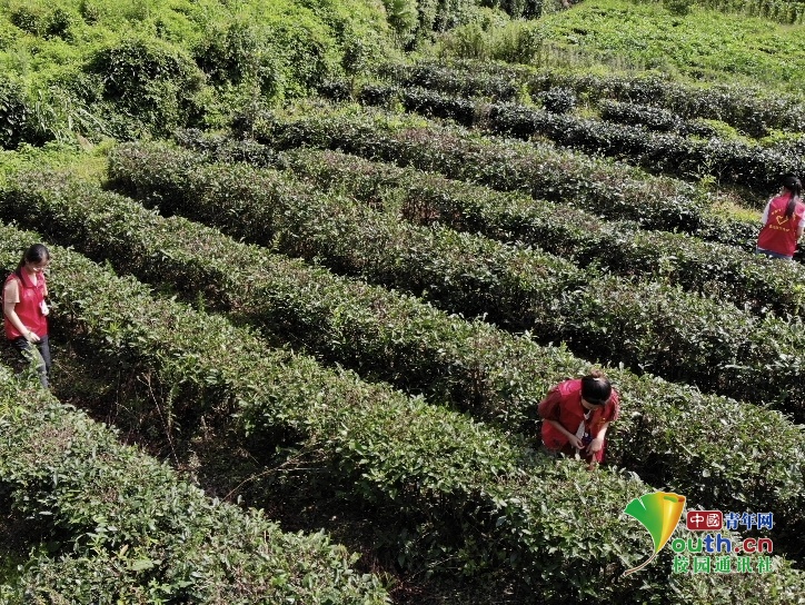图为实践队队员实地走访当地茶园航拍照,为后期宣传邱山村特色农产品做准备。 中国青年网通讯员 李梅 摄