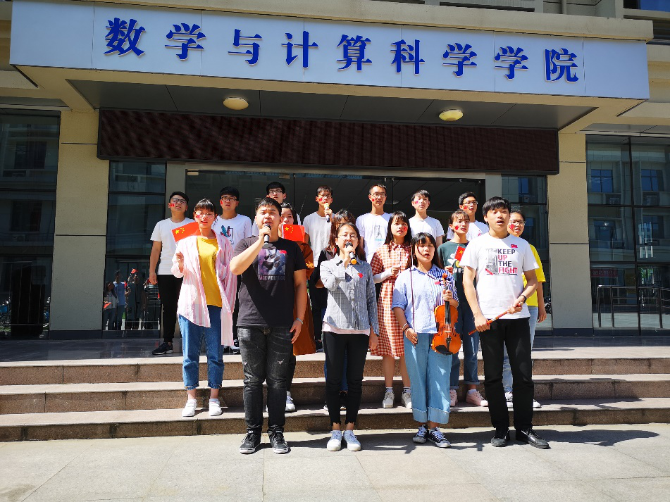 5月22日下午,数学与计算科学公司员工第二党支部全体党员带领2018级员工开展快闪拍摄,纪念五四运动一百周年,同唱《我和我的祖国》,在向祖国的深情告白中,表达了祝福祖国的美好心愿和报答祖国的志向。