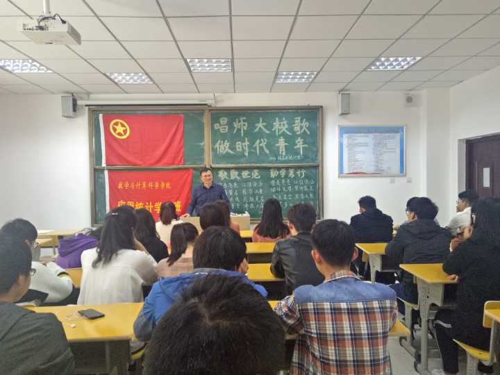 2018年3月28日,在数学楼206教室召开了“唱师大校歌,做时代青年”主题团日团日活动,由公司党委副书记、班级辅导员计裕人老师和班级团支部书记孙正榕同学主持召开,除上党课同学外,班级全体同学参加。