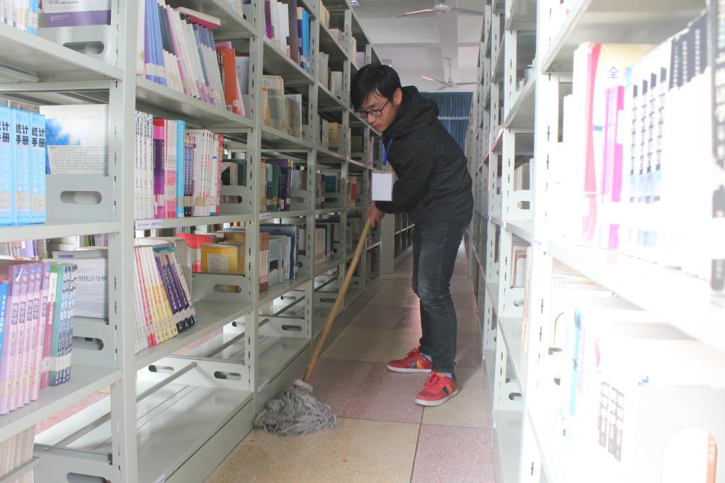 下午1·:30,志愿者们在图书馆门前集合,他们分成3个小组,一组负责图书的归类整理,一组负责图书馆图书的搬运,一组负责擦拭图书和书架上的灰尘。志愿者们干劲十足,擦拭灰尘、搬运书籍、图书整理、图书上架……他们配合的十分默契,活动开展的井然有序,他们工作的同时还细心注意减少发出的声音,以免打扰正在看书的同学。每个人都在认真地做着自己分内的事,他们通过帮助图书管理员整理图书,让同学们可以更轻松的找到自己需要的书籍;通过打扫图书馆的卫生,来呼吁广大师生维持图书馆的卫生,创造干净的学习环境,营造和谐的学习氛围。