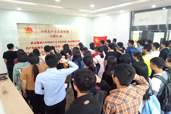 5月7日,我院团总支组织新团员和各班级团支部老团员代表在老员工活动中心开展了"举团旗.唱团歌.戴团徽.重温入团誓词"主题活动。
