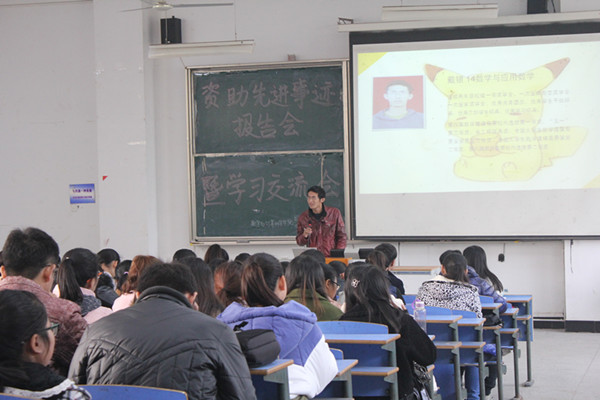 会上,曾连续两年获得校级一等奖学金、一次国家励志奖学金、一次国家奖学金的戴银同学讲述了自己的学习经验,他说:“学习和比赛不在于获奖,而在于过程、在于坚持、在于努力,要坚持到底,则‘一切皆有可能’”。另外,戴银同学还分享了自己的亲身经历,鼓舞大家以学习知识、充实自身为重,并且不断的超越自我、取得佳绩。紧接着,优秀员工代表14级数学与应用数学的姜燕同学给大家分享了自己的学习心得。她说,每个人都有适合自己的学习方法,找到适合自己的方法让学习效率达到最大化才能使学习得到有效的进步。两位同学在讲话结束后都认真听取了在场同学的疑问并积极为他们解答,场内气氛活跃,相互之间愉快交流,共享学习乐趣与经验。