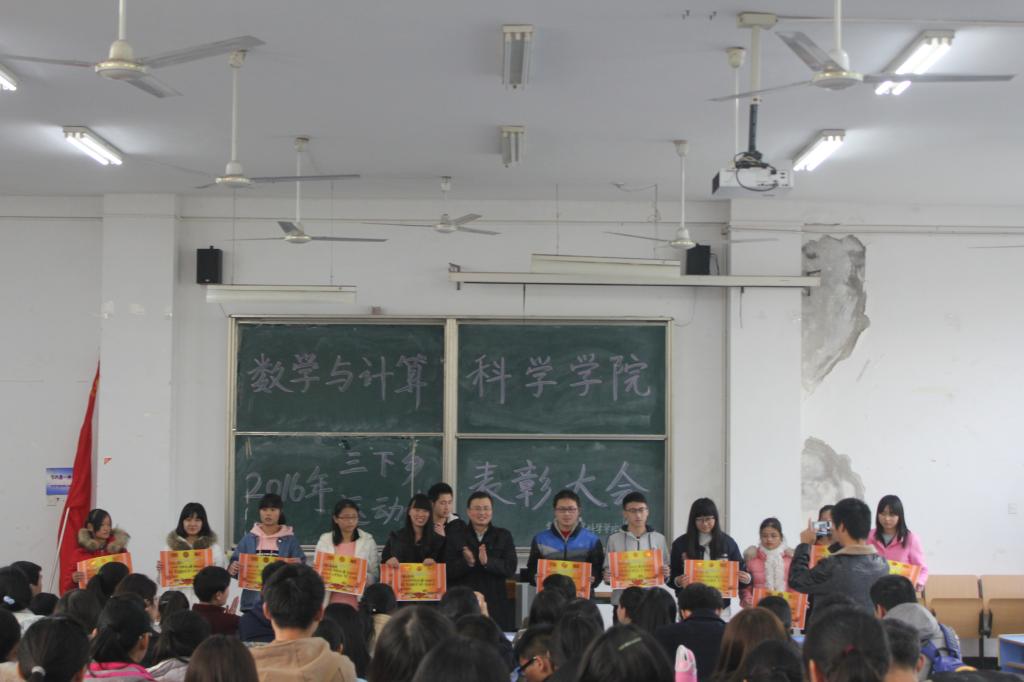 团总支老师和辅导员代表分别宣读了在“三下乡”、运动会表彰名单,为被表彰的同学颁发荣誉证书和奖金并合影留恋。“三下乡”优秀团队代表、优秀运动员代表分别作交流发言。
