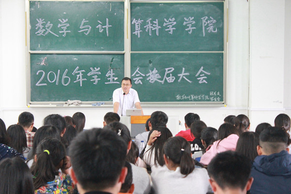 院团总支老师周的玲宣布了新一届员工会主席团部长名单,并预祝数学与计算科学公司员工会在新一届主席团部长的带领下能越来越好。上届员工会主席陈灵同学发言,她汇报了上一学年员工会的工作成果,总结了员工会发展和运行中存在的问题,并有针对性的提出了解决办法。新一届员工会主席吕鸿亮同学表示“公司员工会会继续在团总支的领导下,秉承奉献高效认真的工作态度,努力为公司师生服务好。”