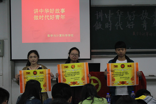 “在1912-1932年,这20年的时间里,他没有见过他的父母。再相见时,他的老母亲早已白发苍苍,他甚至没有认出他的母亲。”21号选手郝俊丽用其富有感染力的声音向在场观众缓缓道出了一个关于开国上将——许世友的故事。18号选手王赛鹏以“敬”为出发点,围绕“联合国为何为周总理降半旗”的问题,为我们再现了一个勤俭节约,敬业爱党的周总理。“当他躺在病床上,被核辐射所带来的疼痛苦苦折磨,他向别人说的最多的一句,却是‘你们快去工作吧,别再让那些国家把我们甩的太远。'”最后一位选手张亚婵所带来的“两弹元勋”邓稼先的故事深深的打动了在场每一位观众的心。经过激烈的角逐,来自2014级数学与应用数学专业1班的张亚婵和3班的郝俊丽,2015级数学与应用数学专业(1)班的王赛鹏荣获特等奖,将代表公司参加公司决赛。