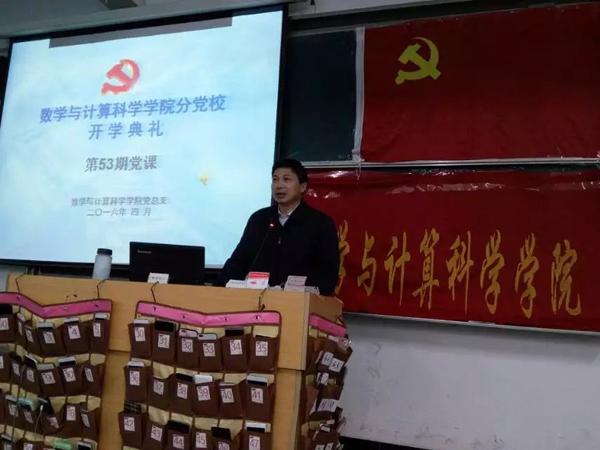 4月6日下午,数学与计算科学公司分党校第53期入党积极分子培训班开班典礼暨《党的基本知识与老员工社会责任》第一堂课在文津楼D304举行。该公司党总支书记、分党校董事长周其生,党总支副书记计裕人,各员工支部书记及全体114名学员参加了开班典礼。典礼由计裕人主持。
