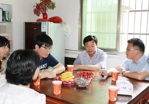 在小李同学家,计裕人副书记与小李同学父母促膝谈心,详细了解了小李同学的病情、在上海长海医院手术过程以及后期的康复情况,询问了其在安庆、合肥及上海的治疗花费情况,将国家对贫困老员工的资助政策和“老员工基本医疗保险省级调剂金”申请手续向家长做了详细介绍;他鼓励小李同学要做好后期的康复工作,积极配合医生,定期复查,争取早日康复重返校园。金海平老师转达了11数(2)班全体同学对小李同学的关心和祝福。返校前,计裕人副书记和金海平老师分别将公司的慰问金和2011级数学(2)班师生捐献的慰问金共计6700余元送到了小李同学手中。
