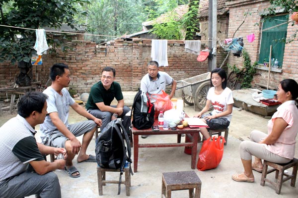 为了使2014级新同学入学前就能感受到公司的关怀和温暖,更好地宣传公司的资助政策,在前往河南走访之前,走访组就制定了走访计划,把2014级新同学纳入走访名单中。通过电话问询等方式,走访组在前期了解到家住虞城县的2014级新生小李同学家庭颇为困难,决定前往走访慰问。走访组在实地走访中看到,小李同学一家四口人至今居住在三间低矮的房子里,家徒四壁,家庭的主要收入来源是几亩玉米地,今年基本颗粒无收。