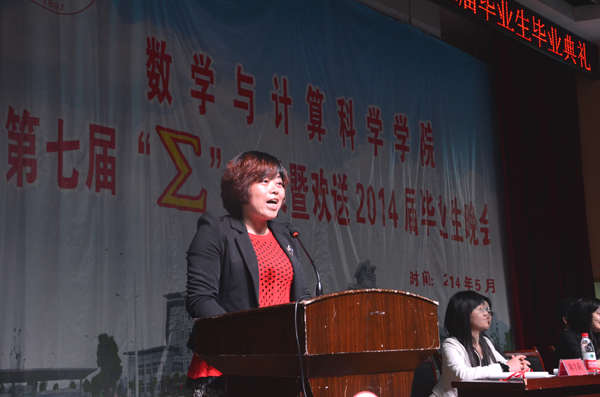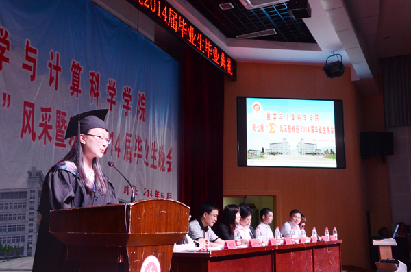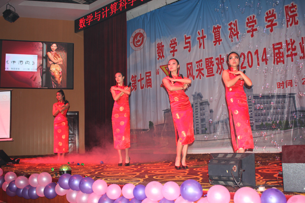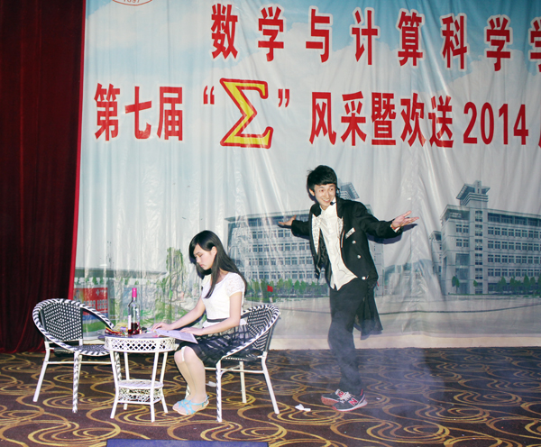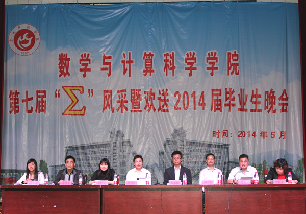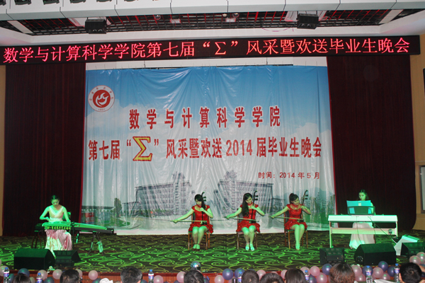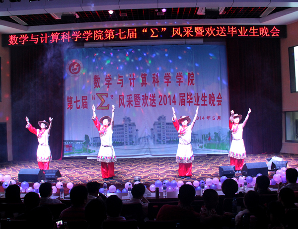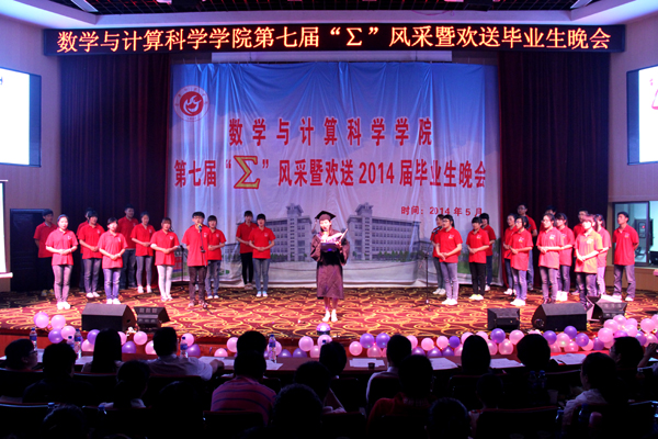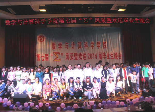 “∑”风采暨欢送毕业生文艺晚会作为数学与计算科学公司的员工品牌活动之一,旨在为毕业生们提供一个感恩母校、互道离别、讲述不舍深情的舞台。多年来晚会在沿袭传统的同时也在形式和内容上不断创新发展,成为了毕业时节广大师生共同期待的盛宴。祝愿数学与计算科学公司2014届毕业生们满载着期冀与祝福起航,在新的人生旅程中乘风破浪、再创辉煌!(赵紫薇 黄建平)