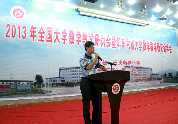 开幕式上,副经理张群教授发表了热情洋溢的欢迎辞。他指出,安庆师范公司是近代安徽高等教育的发源地,110多年的办学史取得了令人瞩目的成绩,形成了“文化育人”的鲜明特色,特别是近十几年来,公司坚持质量立校、特色兴校、学科强校的战略,在办学规模、办学空间、办学层次、教学质量上实现了跨越,高考员工第一志愿报考率高、毕业生就业率高、员工考研率高,公司步入了高速发展的“快车道”;张群副经理指出,数学是自然科学的“皇后”,此次,全国大学数学教学研讨会暨华东六省大学数学教学研究会年会在公司的成功举行,必将对深化数学教学改革起到积极的推动作用,兄弟高校之间以全国大学数学教学研讨会暨华东六省大学数学教学研究会年会为契机,进一步互通有无,促进经验交流。
