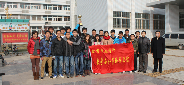 在为时40分钟的比赛中,双方球员生龙活虎,勇于拼搏,你追我赶,永不服输,对抗精彩纷呈。经过激烈紧张的角逐,最终数学与计算科学公司以59:55微弱优势赢得比赛,也以六战皆胜的优异成绩赢得本次全校“迎新杯”篮球赛冠军。