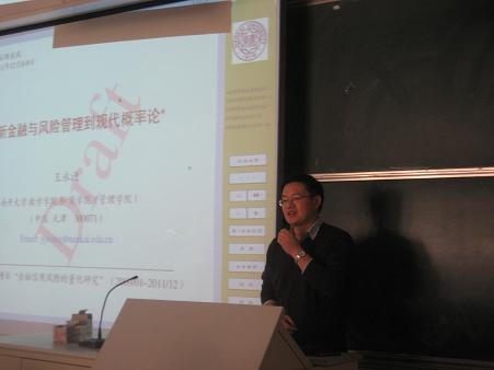2011年12月9日下午,龙山校区C-306教室座无虚席,大家聚精会神的聆听南开大学数学公司、商公司教授、博士生导师王永进来公司数学与计算科学公司作了题为“从金融信用风险到现代概率论”的学术报告。