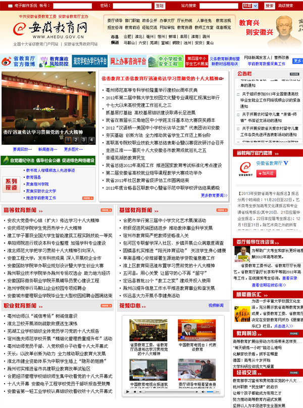 11月20日,安徽省教育厅门户网站安徽教育网在首页显著位置转发公司员工热学、热议十八大精神的新闻。公司高度重视十八大精神的学习宣传,6个员工党支部相继召开了学习座谈会。下一步,公司将根据公司的统一部署,组织好师生更好地开展好十八大精神的学习宣传、贯彻落实工作。