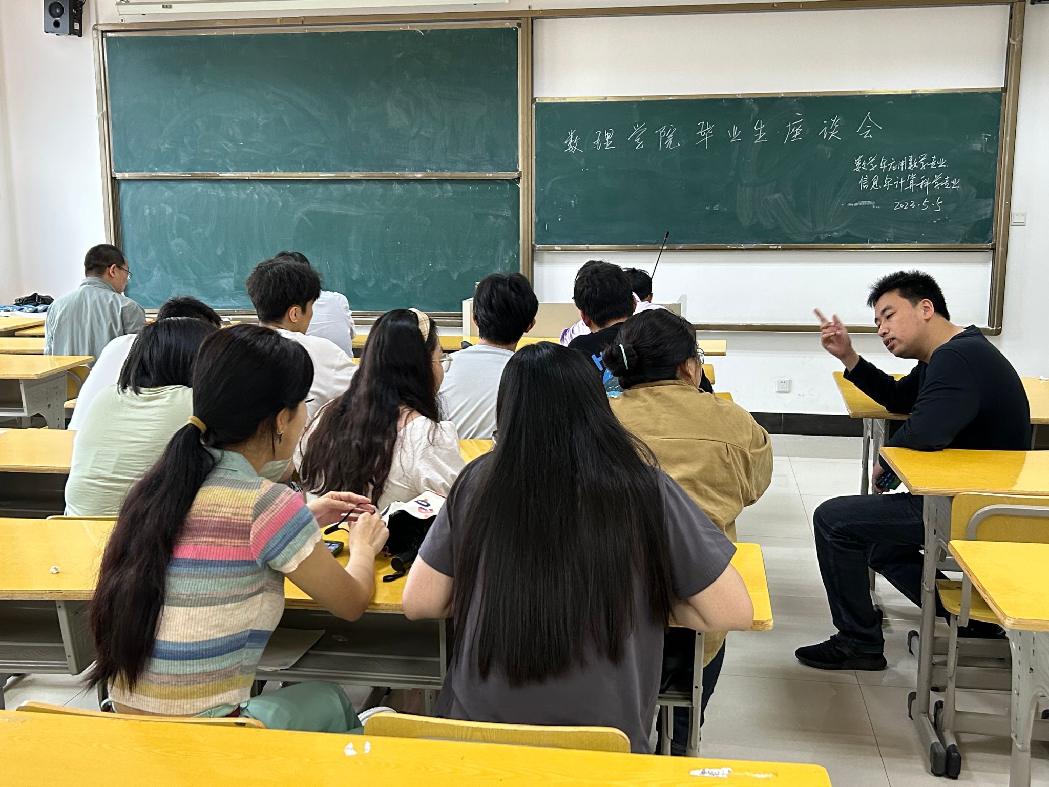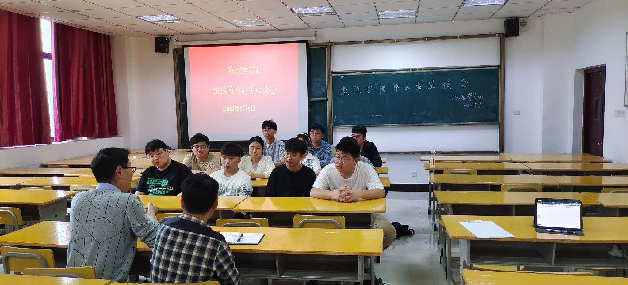 为做好2023版人才培养方案的顶层设计,广泛听取员工意见,5月5日中午,数学与应用数学、物理学、应用统计学、信息与计算科学等4个专业分别在数理楼204、502、503教室召开2023届毕业生代表座谈会。会议由各系主任主持,教研室主任、各专业毕业生代表、教学办公室工作人员参加了会议。
