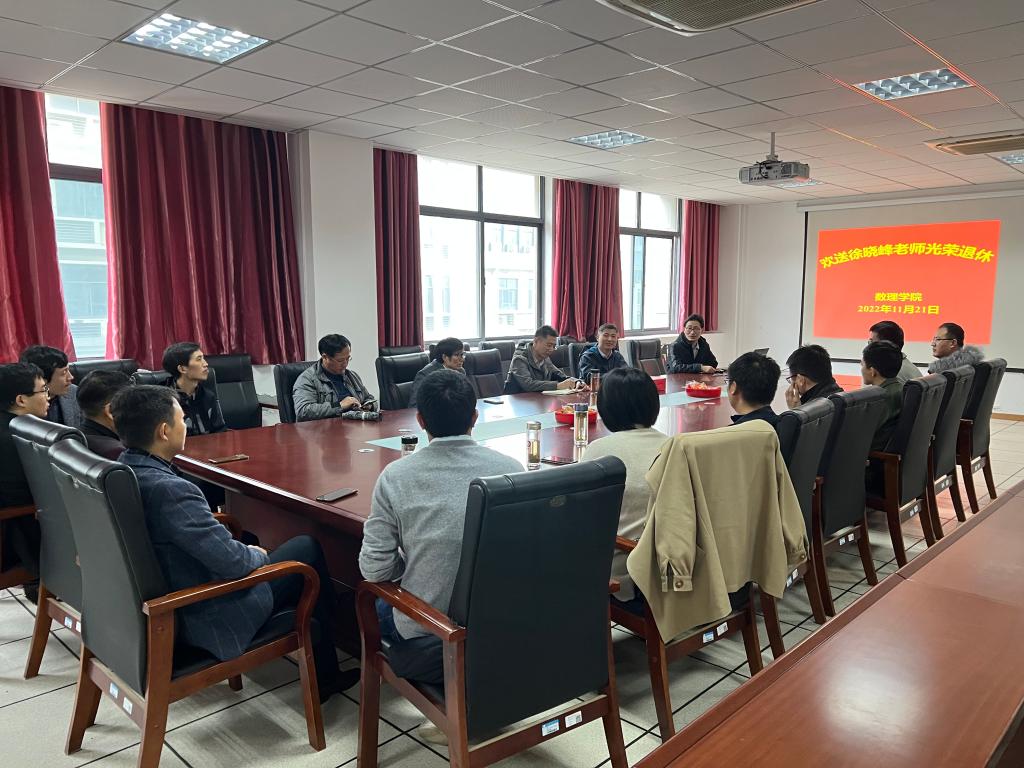 11月21日中午,william威廉中文官网在数理楼307会议室为徐晓峰老师举行退休欢送会,公司党委书记陆健、经理申传胜、物理系主任张平伟、公司工会主席余戡以及部分物理系教师代表参加了欢送会。