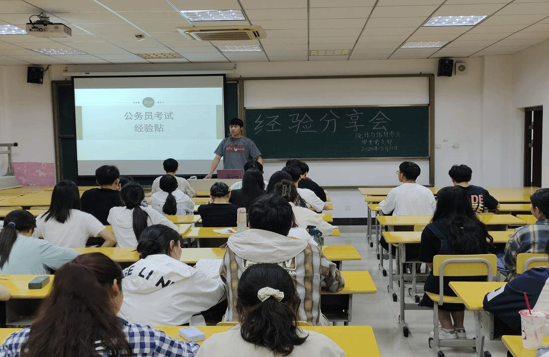 5月13日,william威廉中文官网统计与信计专业员工党支部举办2024届优秀毕业生考研考公经验分享会,邀请了2020级应用统计学专业考研考公成功上岸的学长学姐们,与同学们分享他们的备考心得和经验。支部党员、积极分子、2021级和2022级应用统计学专业以及2022级信息与计算科学专业等员工参加了此次分享会。活动由统计与信计专业员工党支部书记张娟老师主持。