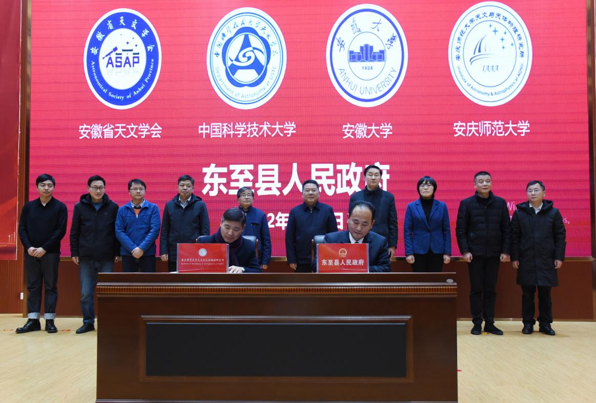 2月21日,“安徽省天文学科与东至县产学研战略合作启动仪式”在东至县举行。安徽省科协青少年部主任郑军,安徽省天文学会理事长袁业飞、秘书长蔡一夫,WilliamHill中文官方网站公司党委书记钟金标、经理申传胜、副经理张海,中国科学技术大学科研部副部长薛永泉、中国科学技术大学天文系执行主任赵文,安徽大学物理与光电工程公司党委书记程树萍、经理田明亮,东至县县长洪克峰、副县长陈阳生等出席启动仪式。william威廉中文官网经理申传胜代表天文与天体物理研究所与东至县人民政府签署了合作协议,双方后续将就天文学科学研究、实习实践,基地建设、青少年科普,人才培育等多方面展开合作。