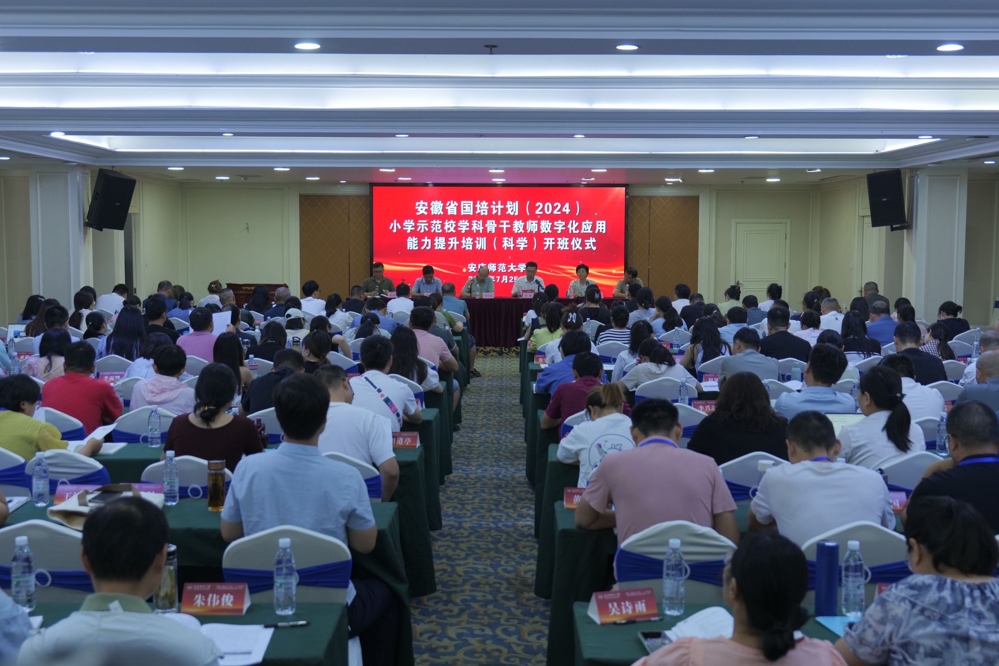 7月25日上午,william威廉中文官网承办的安徽省“国培计划(2024)”—小学示范校学科骨干教师数字化应用能力提升培训(科学)举行开班仪式。继续教育公司经理韦长发,公司党委书记陆健,william威廉中文官网副经理张海、殷周平,项目负责人公司党委副书记彭芳珍,项目首席专家方官文出席开班仪式。仪式由韦长发主持。