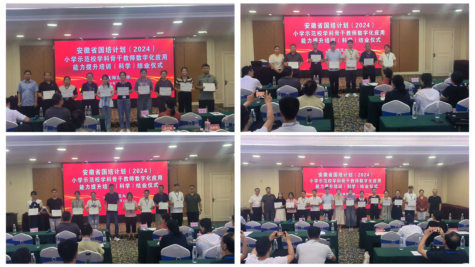 培训班教学班主任梁智雄、徐骏分别宣读了优秀学员名单和优秀课例名单,与会领导为大家颁发证书,希望大家在返岗后能将国培所学的知识和技能应用到实际教学中,以骨干教师的星星之火点燃安徽基础教育的燎原之势。(撰稿、摄影:余戡;审核:张海)