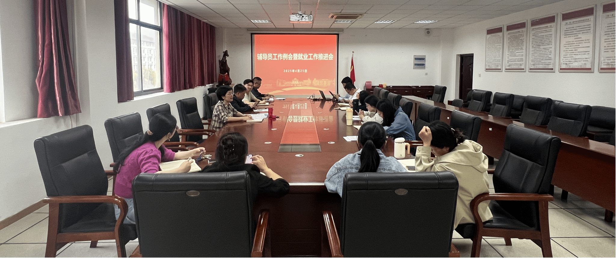 彭芳珍首先传达公司关于做好2024—2025学年毕业班员工素质综合测评暨评优工作的通知,随后与会人员讨论通过《2025届毕业班员工素质综合测评细则》,接着对第八届辅导员素质能力大赛进行布置,并对员工日常管理、心理健康教育、学风建设、电诈防范、五一假期员工安全教育等工作进行强调。在工作交流环节,各分管老师依次汇报负责领域工作进展,针对当前工作难点共同探讨解决方案,并明确下一阶段工作计划,确保各项任务有序推进。