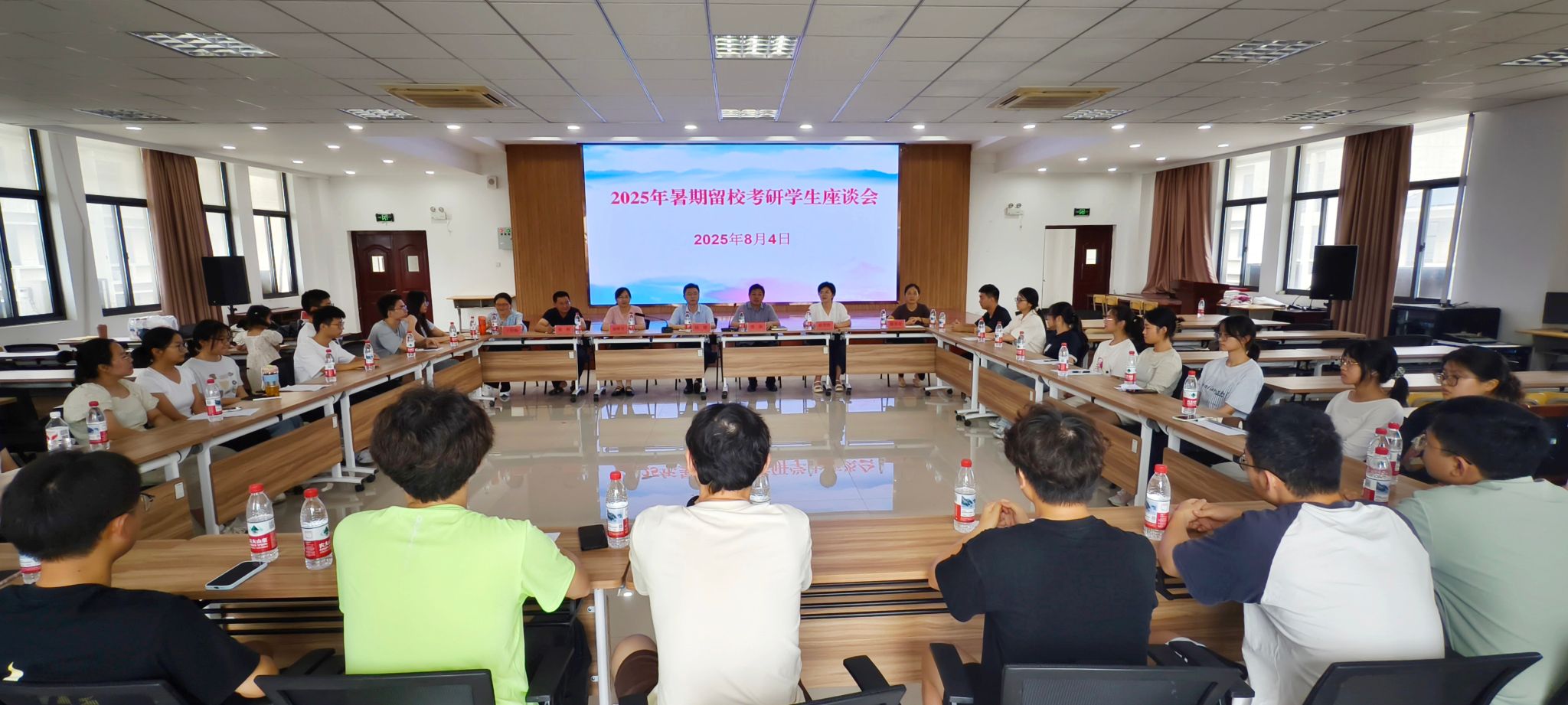 讨论交流环节,针对同学们提出的考研择校和专业复习等问题,与会领导与教师一一进行了解答。并要求同学们暑期在校要注意用水用电安全,谨防电信诈骗。