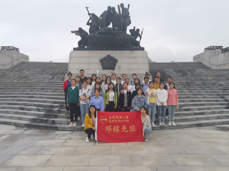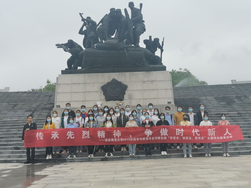4月22日下午,2019级数学与应用数学专业邓稼先班全体同学在班级辅导员老师胡永模的带领下,前往安庆市革命烈士陵园,开展主题为“学党史、强信念、跟党走”主题班会教育活动,缅怀为了祖国解放和人民安宁而英勇牺牲的革命烈士,瞻仰他们的丰功伟绩。