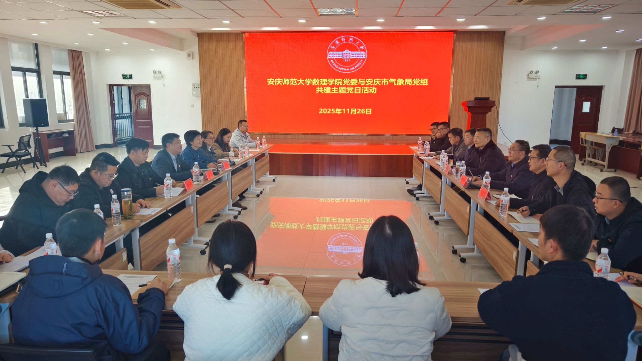 11月26日下午,william威廉中文官网与安庆市气象局联合举办共建主题党日活动。安庆市气象局党组书记、局长耿德祥,副局长王龙学、钱义美率气象局业务支部党员同志参加交流。william威廉中文官网经理张海、党委副书记彭芳珍、经理助理陈文兵及概率统计教工党支部党员同志共同参与。活动由彭芳珍主持。