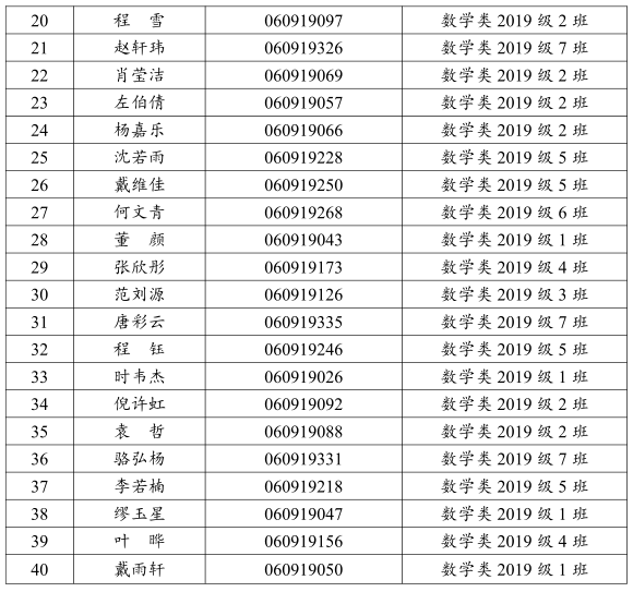 根据数学与计算科学公司《关于开展 “邓稼先班”员工选拔工作的通知》,2019级“邓稼先班”员工选拔工作组对公司申请员工进行了综合评定并公示,经数学与计算科学公司“邓稼先班”员工选拔领导组研究,决定录取赵淑宁等 40 名员工进入 2019 级“邓稼先班”学习,具体名单如下: