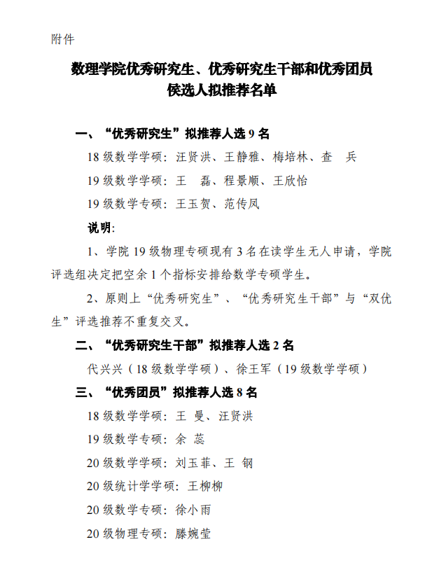公司关于优秀研究生、优秀研究生干部和优秀团员推荐人选的公示