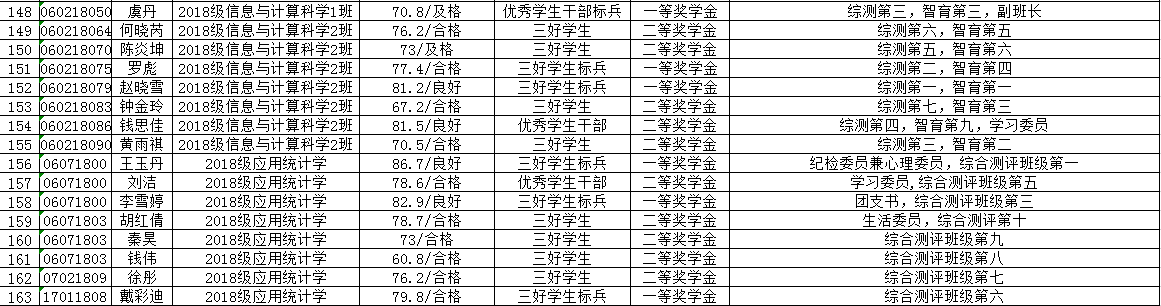 根据公司《关于做好2018—2019学年员工素质综合测评暨评优工作的通知》要求、经个人申请、各班级评议、公司学工组审核,拟同意刘钰萍等163名同学申请2018—2019年度公司一、二等奖学金和三好员工标兵、优秀员工干部标兵、三好员工、优秀员工干部等荣誉称号,并予以公示。