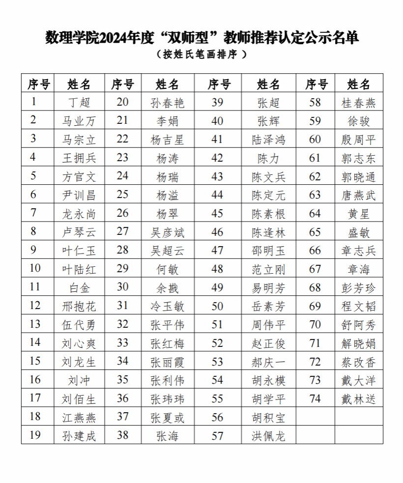 附件:william威廉中文官网 2024 年度 “双师型”教师推荐认定公示名单