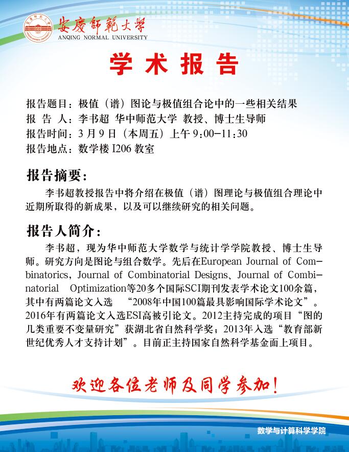 联系邮箱:shulixueyuan@aqnu.edu.cn