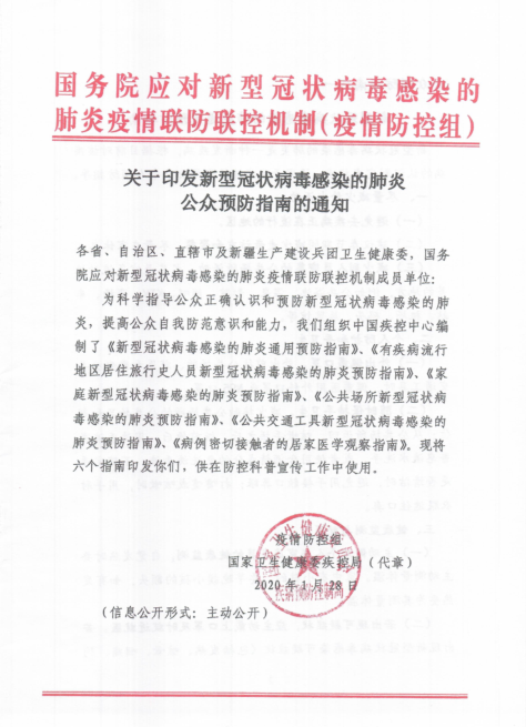 关于转发新型冠状病毒感染的肺炎公众预防指南的通知