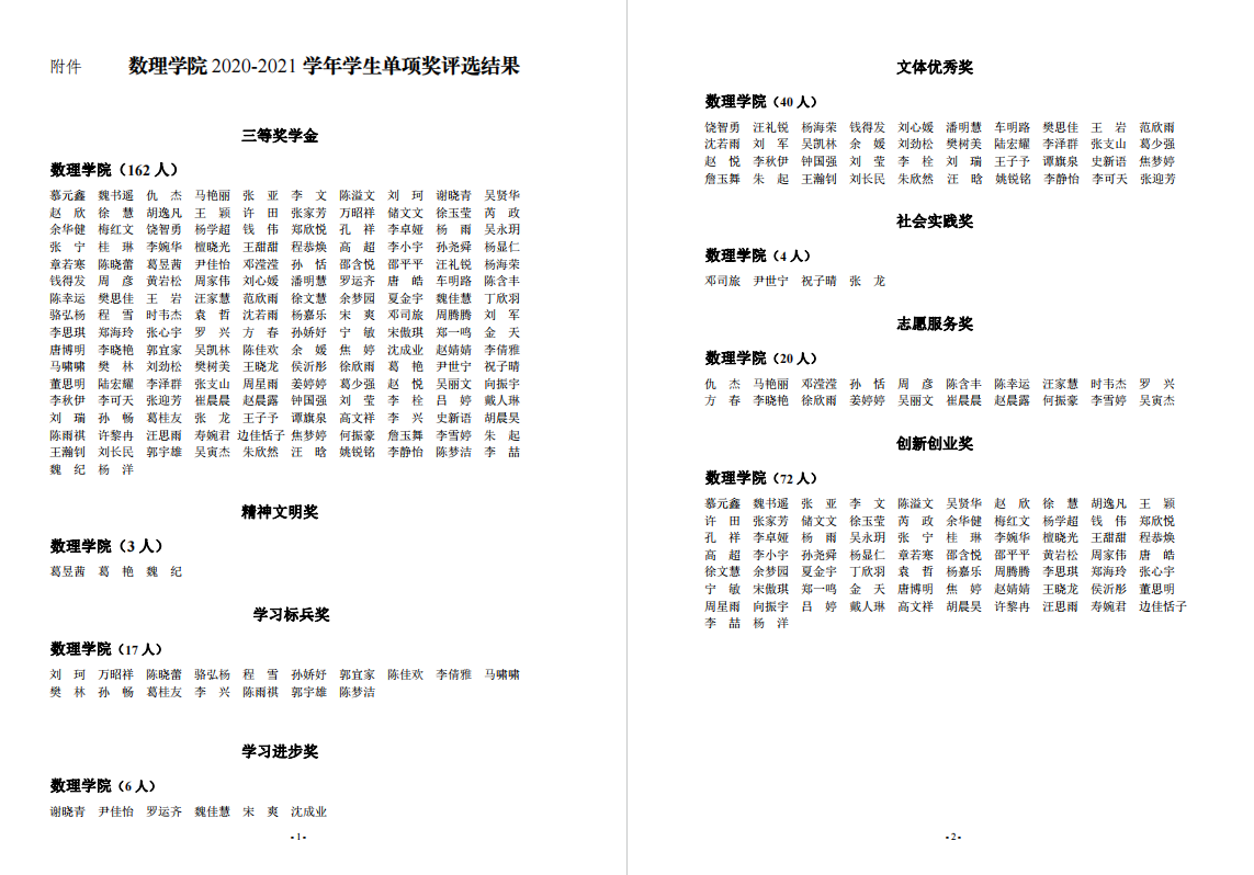 附件:2020-2021学年员工单项奖评选推荐结果