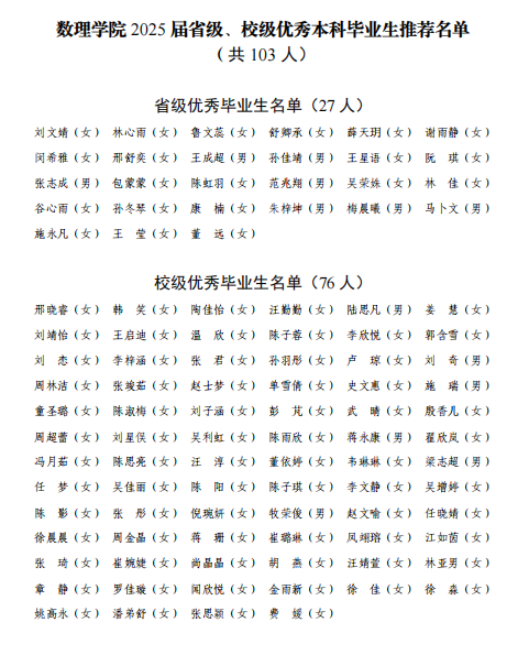 根据公司《关于做好2025年省级、校级优秀毕业生评选工作的通知》精神,经本科生个人申请、公司员工工作委员会评议、公司党委会和党政联席会议审定,拟推荐刘文婧等103名本科生分别为省级和校级优秀毕业生,具体推荐人选名单详见附件。