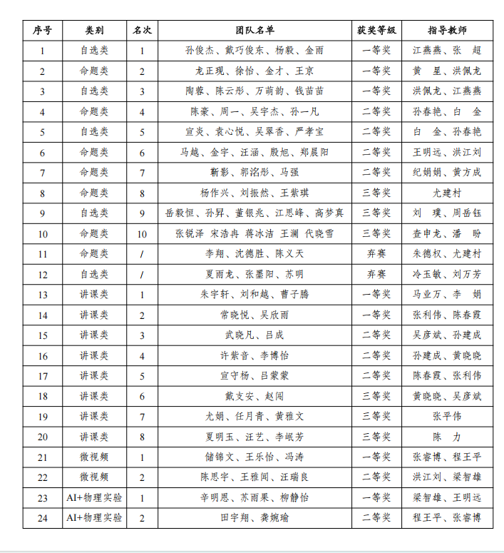 根据2025年全国老员工物理实验竞赛校内选拔赛评审结果,拟评选一等奖7项、二等奖9项、三等奖6项。待省赛通知文件印发后,公司将根据校赛参赛成绩及省赛参赛指标,择优确定推荐参加省赛名单。校内选拔赛结果如下: