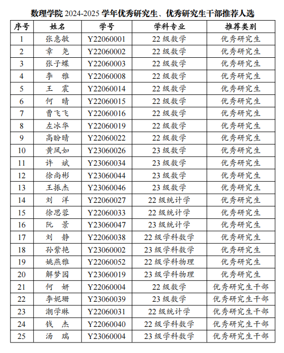 根据《WilliamHill中文官方网站研究生表彰奖励办法》和公司《关于做好2024-2025学年优秀研究生、优秀研究生干部评选工作的通知》精神和要求,经研究生个人申请、班级和辅导员初核、公司学位评定委员会评议、公司党委会和党政联席会议审定,拟推荐张惠敏等20名研究生、何妍等5名研究生分别为校级优秀研究生和优秀研究生干部人选,推荐人选公示如下: