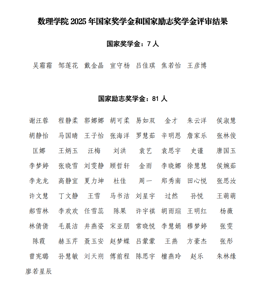 附件:2025年国家奖学金和国家励志奖学金评审结果