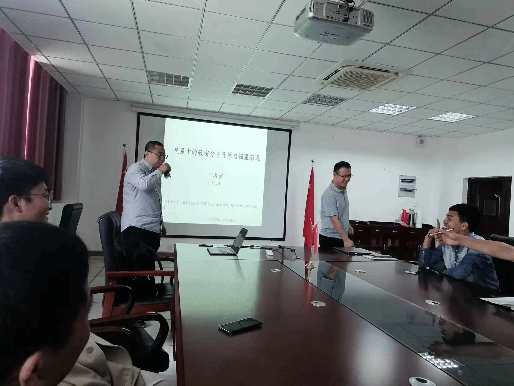 报告中,王教授介绍了多个致密分子气体探针的星系大样本观测、星系中致密分子气体探针同位素的观测研究、致密分子气体探针的高空间分辨率观测。阐述了不同致密分子气体探针的示踪致密分子气体的一致性问题、致密分子气体探针的光学厚度及其对分子气体性质估算的不确定性的影响、活跃恒星形成区域的空间分布、河外星系及银河系中通过同位素谱线计算光厚线的光学厚度的方法可靠性等。
