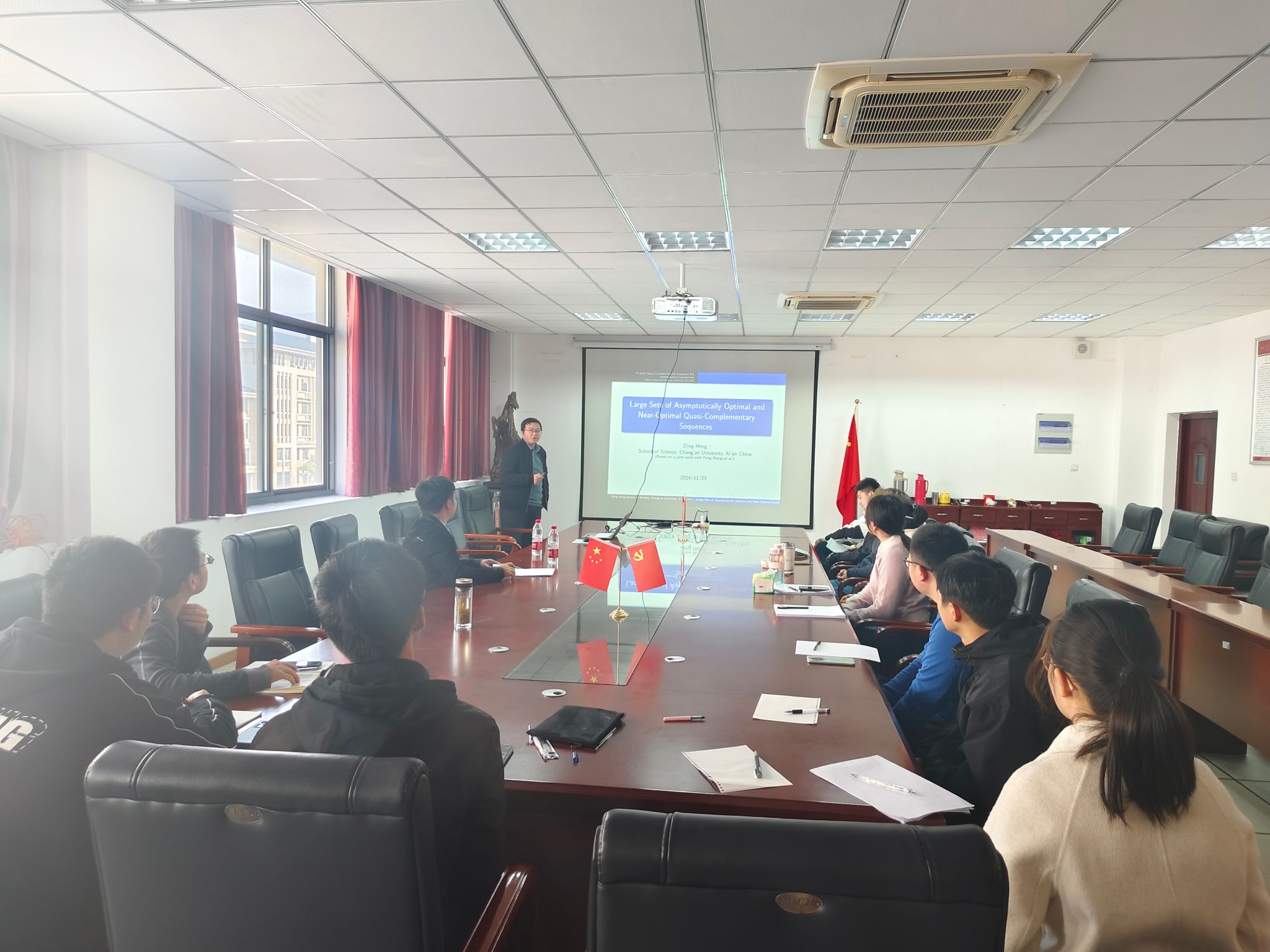 在报告会中,衡子灵教授首先介绍了周期准补序列集合的研究背景,并借助有限域上的多项式理论及特征和构造了五类最优或者几乎最优的周期准补序列集合。结合该领域热点问题,衡子灵教授详细介绍了其带领的团队在序列集合的构造方面取得的研究进展。