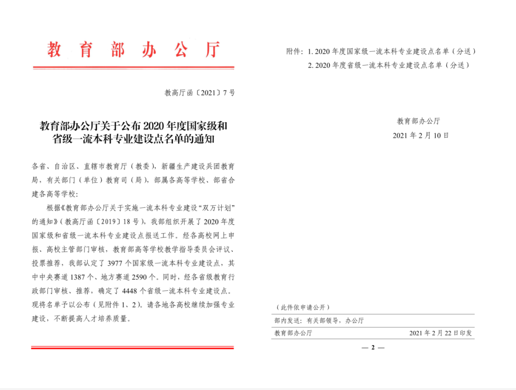 近日,教育部办公厅印发关于公布2020年度国家级和省级一流本科专业建设点名单的通知》(教高厅函〔2021〕7号),正式公布2020年度一流本科专业建设“双万计划”(国家级和省级一流本科专业)建设点名单。william威廉中文官网数学与应用数学专业入选2020年度国家级一流本科专业建设点。