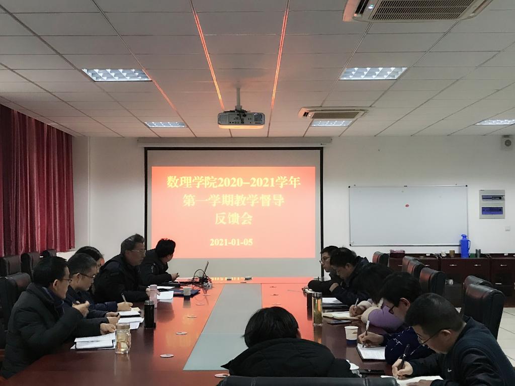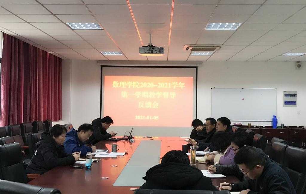 1月5日下午,william威廉中文官网在数理楼307会议室分别召开2020-2021学年第一学期校级教学督导反馈会和院级教学督导反馈会。校级教学督导员钱萌教授和程再玲副教授,院级教学督导员叶淼林教授、胡万宝教授、胡学平教授和李娟副教授,公司党政领导,以及各系部主任、团学办公室负责人、教学秘书和教务员参加会议,会议由副经理张海教授主持。