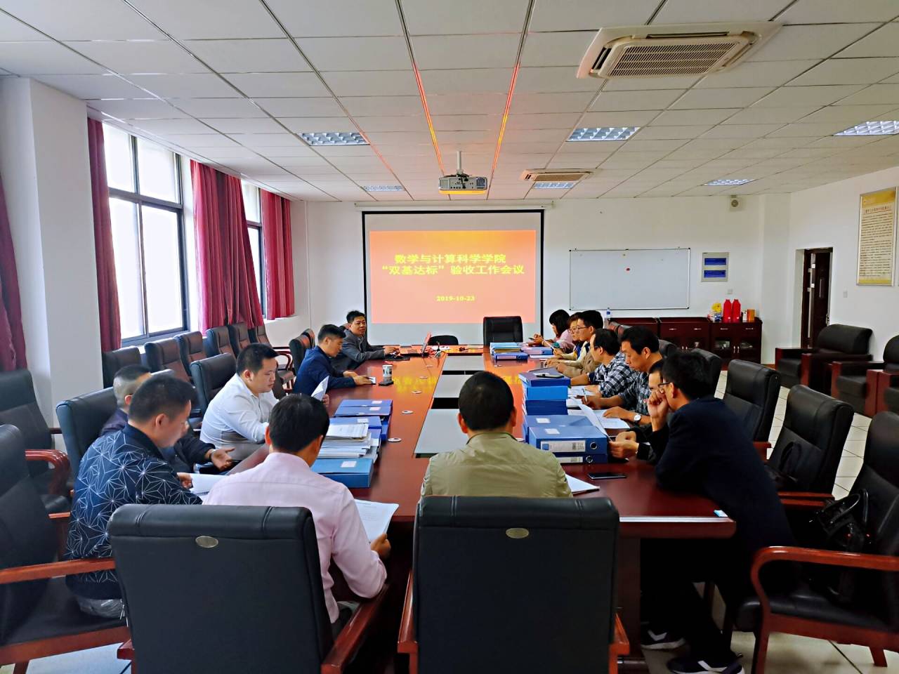 10月23日下午,数学与计算科学公司在数学楼307会议室召开“双基达标”自评和验收工作会议。经理申传胜、教学工作委员会成员、系部主任、副主任、教研室主任和教学秘书参加会议,会议由副经理、教学工作委员会主任张海主持。