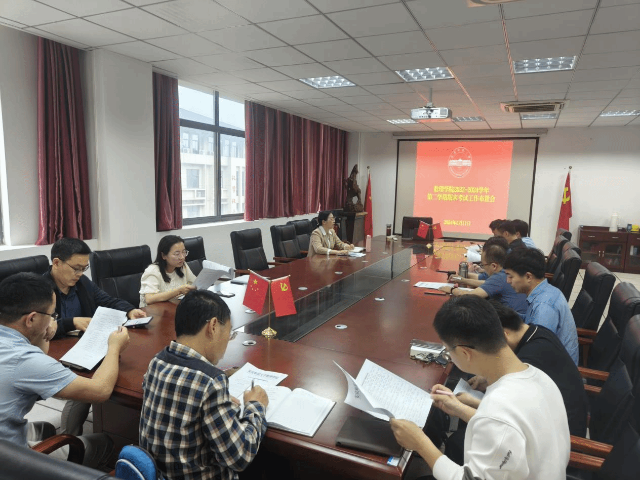 易明芳布置了2023-2024 学年第二学期期末考试工作的具体任务,强调了期末考试工作的时间节点、重点环节和注意事项,试题难度适中、题量合适,要体现课程建设“两性一度”的要求,适当融入课程思政元素。与会人员就期末考试工作的具体任务落实和细节安排进行了充分的交流和讨论。