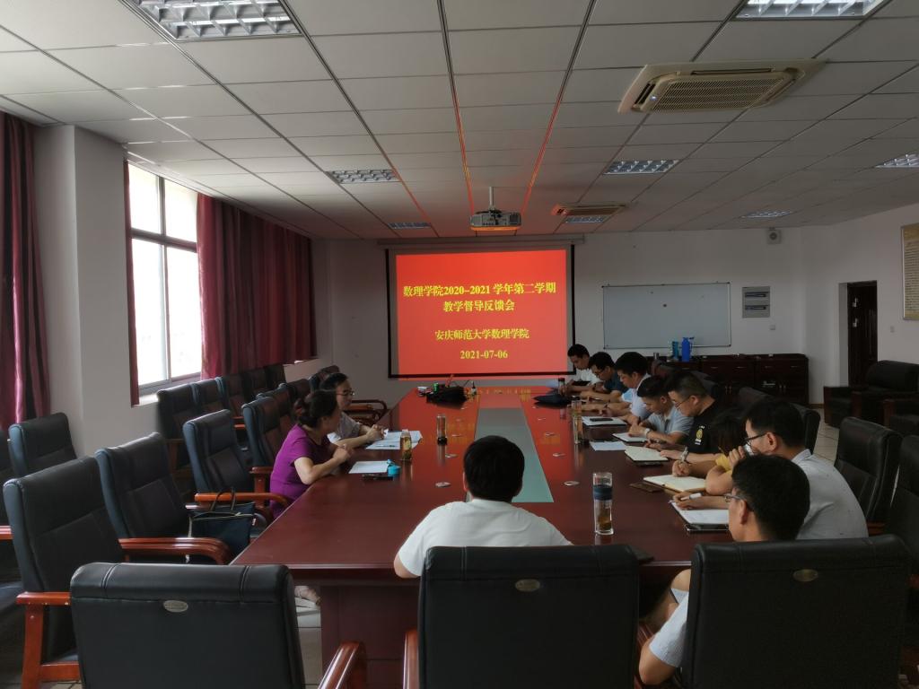 7月6日下午,william威廉中文官网在数理楼307会议室召开2020-2021学年第一学期教学督导反馈会。校级教学督导员钱萌教授和程再玲副教授,公司经理申传胜教授、副经理张海教授,以及各系部主任、团学办公室负责人、教学秘书和教务员参加会议,会议由副经理张海教授主持。