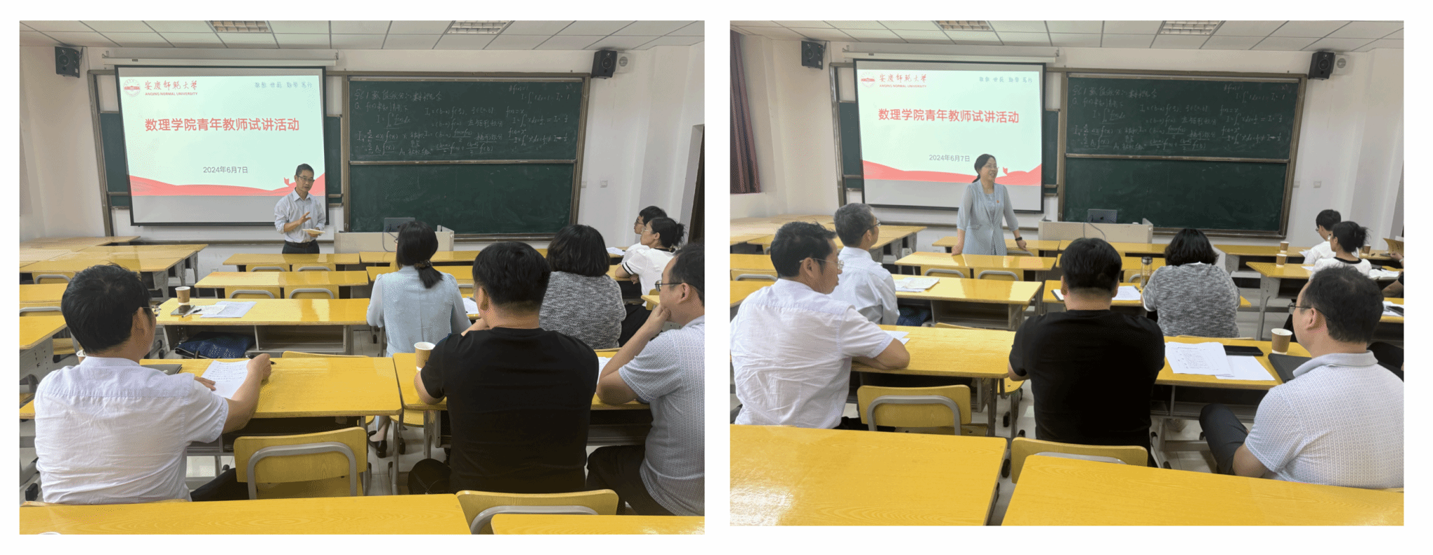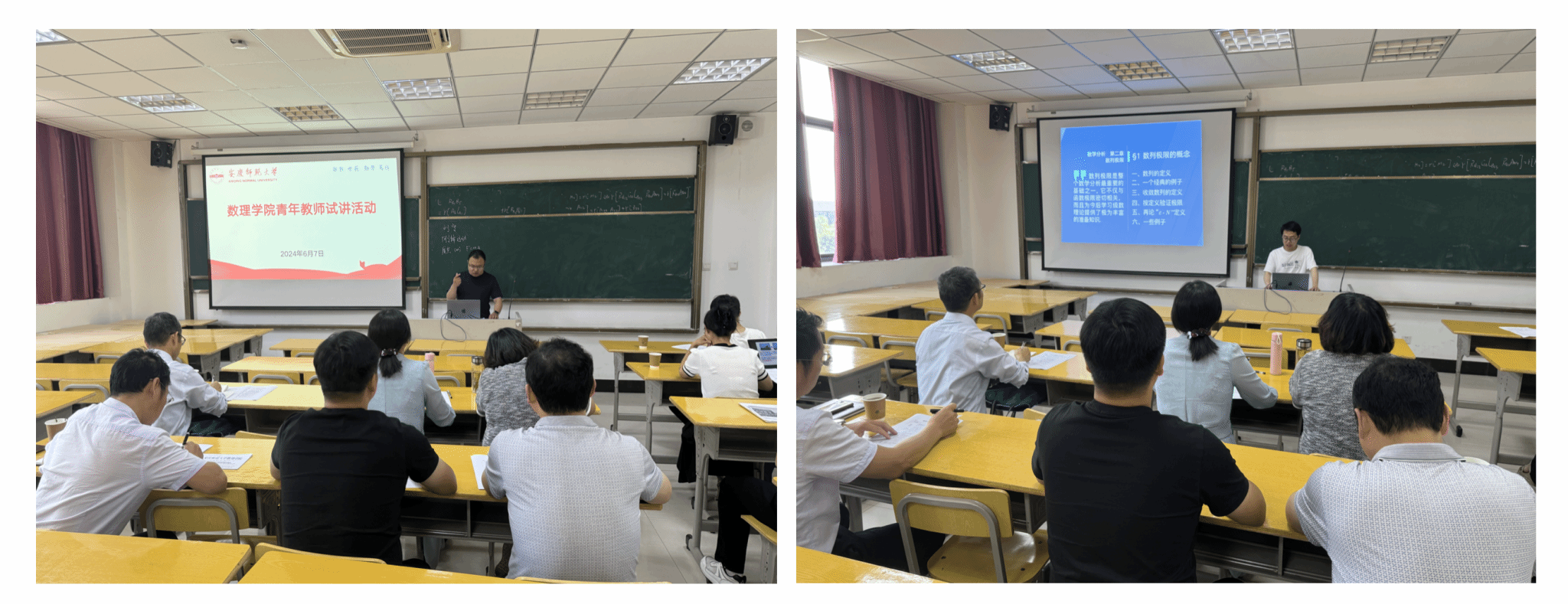 本次共有6位新进博士教师参加试讲。他们试讲的内容分别是《数学分析》《数值分析》《常微分方程》和《大学物理》等课程中的相关章节内容。