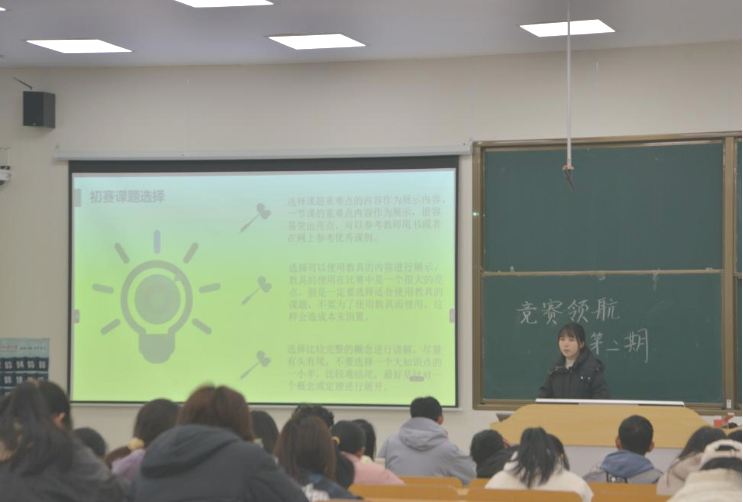 孙建成以“师范生教学技能竞赛动员宣讲”为主题发表精彩演讲。他以其深厚的学术底蕴和丰富的指导经验,深入浅出地分析了师范生教学技能竞赛的核心价值和备赛策略。他强调,竞赛不仅是知识的较量,更是思维方式和竞赛技巧的展现。孙老师鼓励同学们在日常学习中,不仅要注重知识的积累,更要培养分析问题和解决问题的能力。他还分享了自己在指导员工备赛过程中的心得体会,为同学们提供了宝贵的建议。