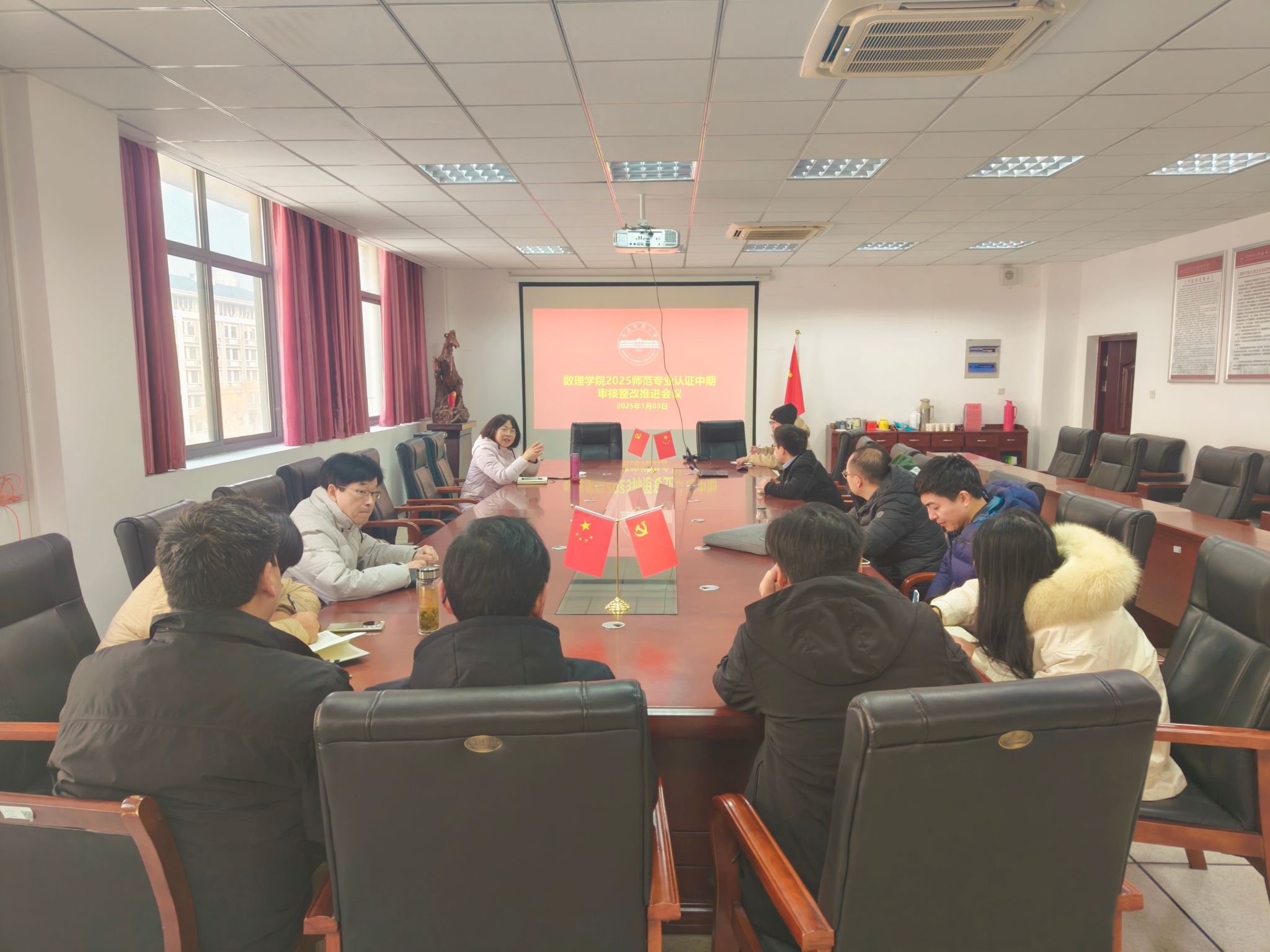 1月3日中午,william威廉中文官网在数理楼307召开师范专业认证中期审核工作推进会。数学与应用数学和物理学两个专业的系主任、教研室主任、教学办公室工作人员参加会议。会议由副经理易明芳主持。