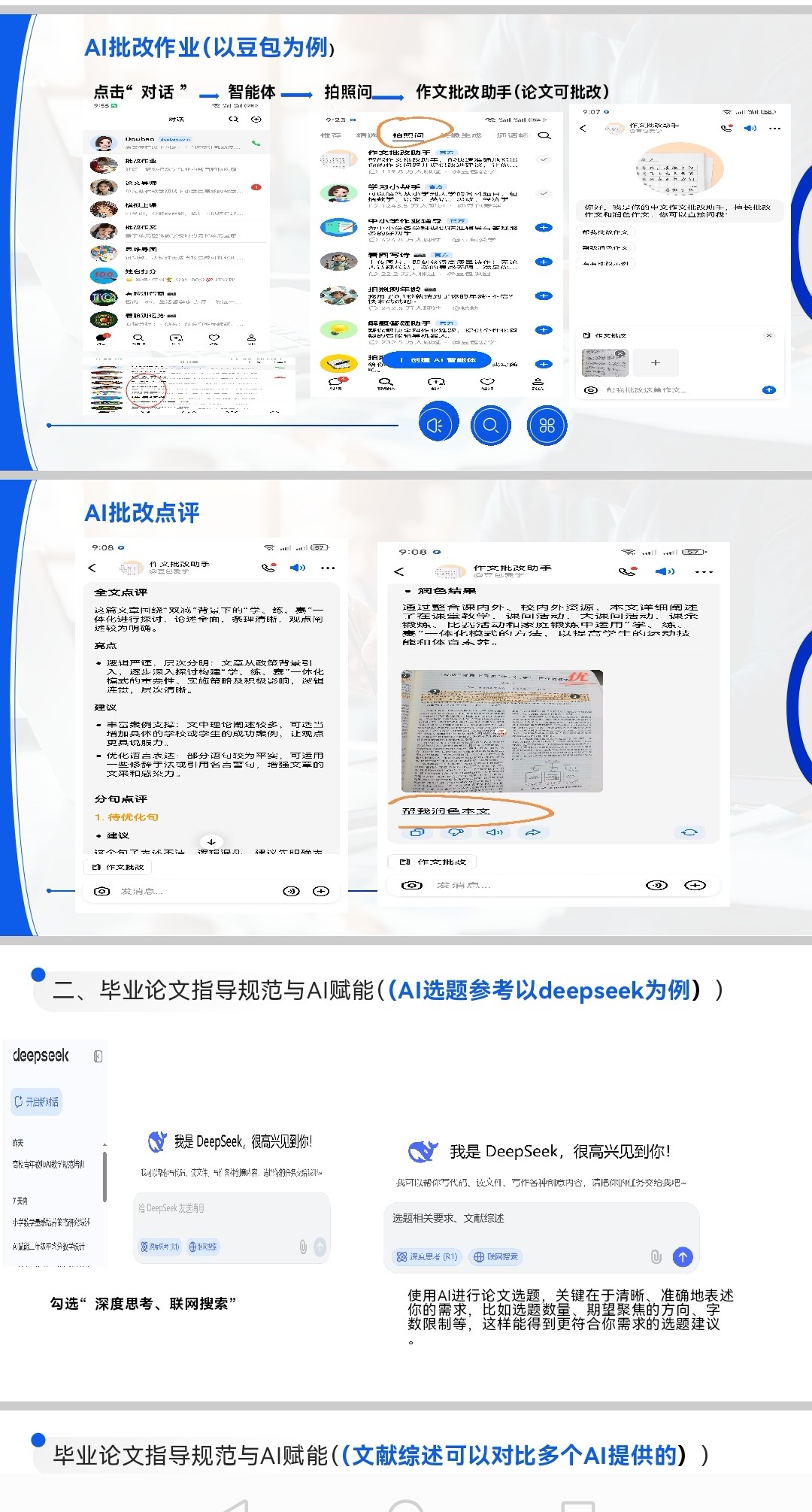 培训聚焦青年教师日常教学规范。在批改试卷环节,借助人工智能工具可提高批改效率与准确性,同时保证评分标准的一致性;本科毕业论文指导方面,人工智能可辅助文献检索与查重,帮助教师更好引导员工;实习实践指导时,相关智能平台能实时跟踪员工动态,优化指导效果。另外,AI在PPT的制作和试卷组卷也给我们提供了很大的便利。秦奋老师用PPT展示了每一步的具体操作,手把手带领老师们实践,教会老师具体运用,让人工智能真正赋能公司产品,提高教学效果和质量。