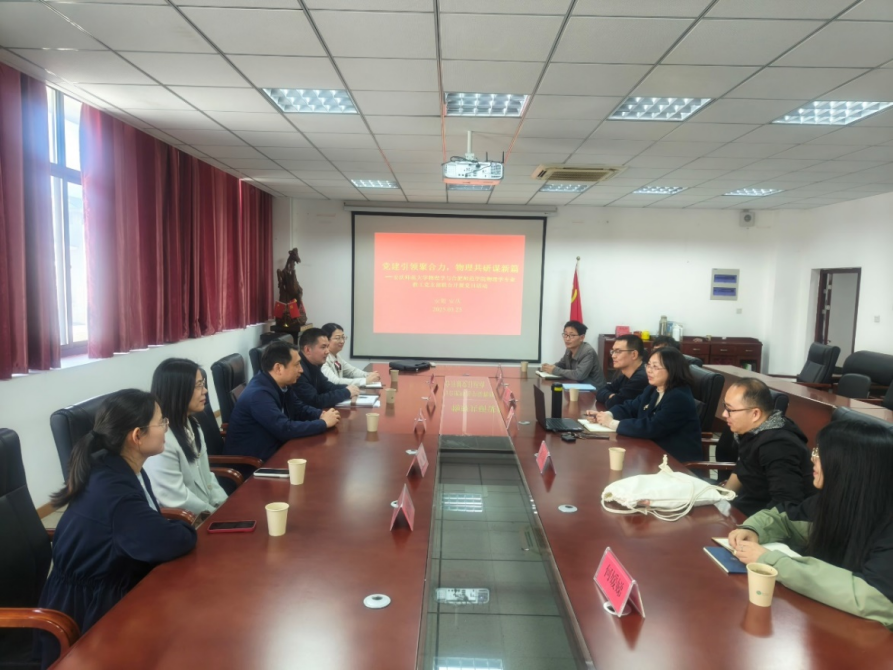 3月25日上午,合肥师范公司物理与材料工程公司副经理余龙宝、物理系主任沈永才等一行5位党员同志来william威廉中文官网开展主题党日活动,双方围绕“党建引领聚合力,物理共研谋新篇”开展交流。william威廉中文官网副经理易明芳、物理系系主任吴彦斌、大学物理党支部副书记何嫒娣、学科物理硕士点点长张平伟、实验实训中心主任白金等参加活动,活动由易明芳主持。